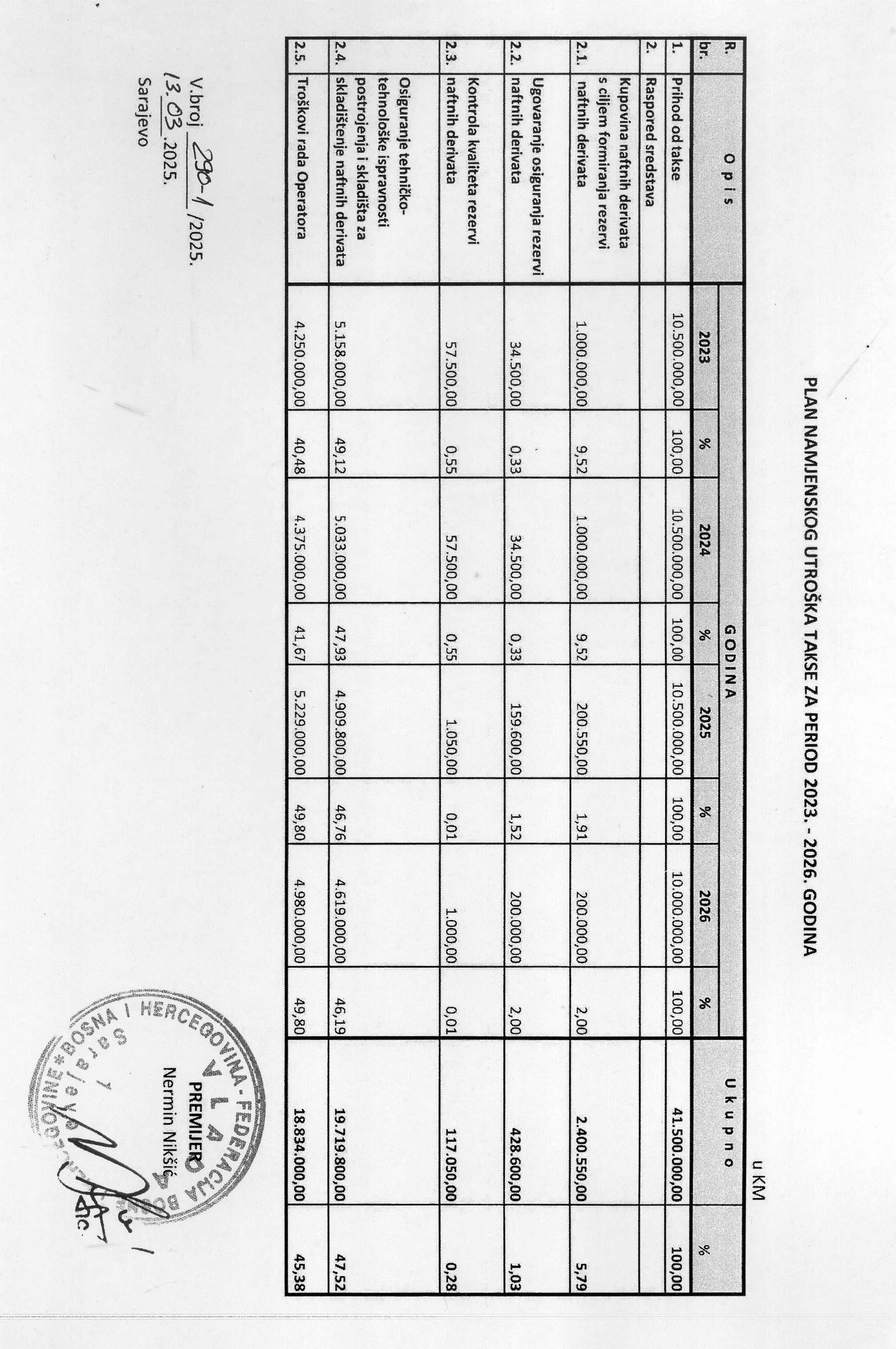 O IZMJENAMA ODLUKE O NAČINU NAMJENSKOG UTROŠKA SREDSTAVA OSTVARENIH PO OSNOVU TAKSE ZA USPOSTAVU REZERVI NAFTNIH DERIVATA ZA PERIOD 2023. - 2026. GODINA