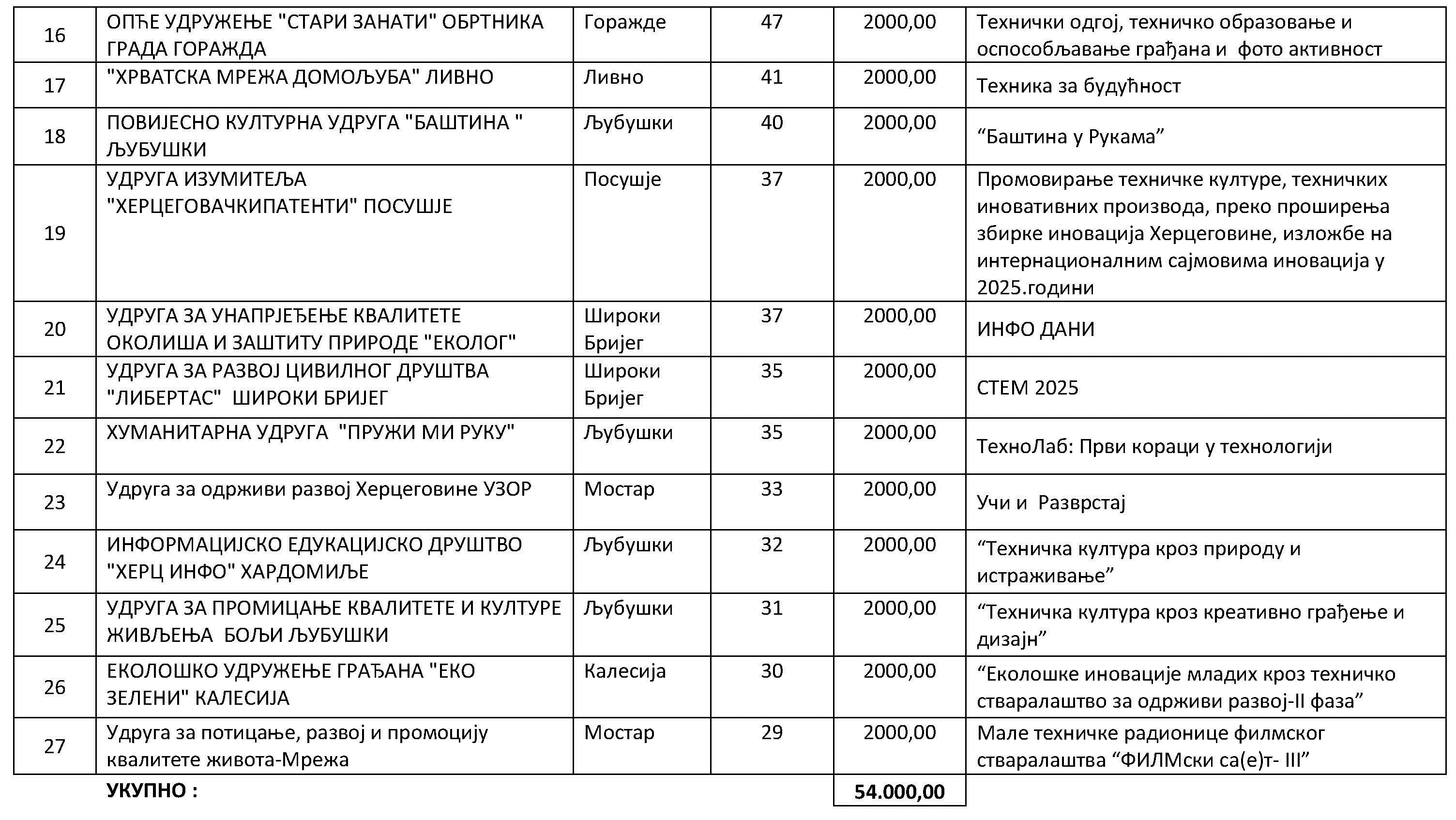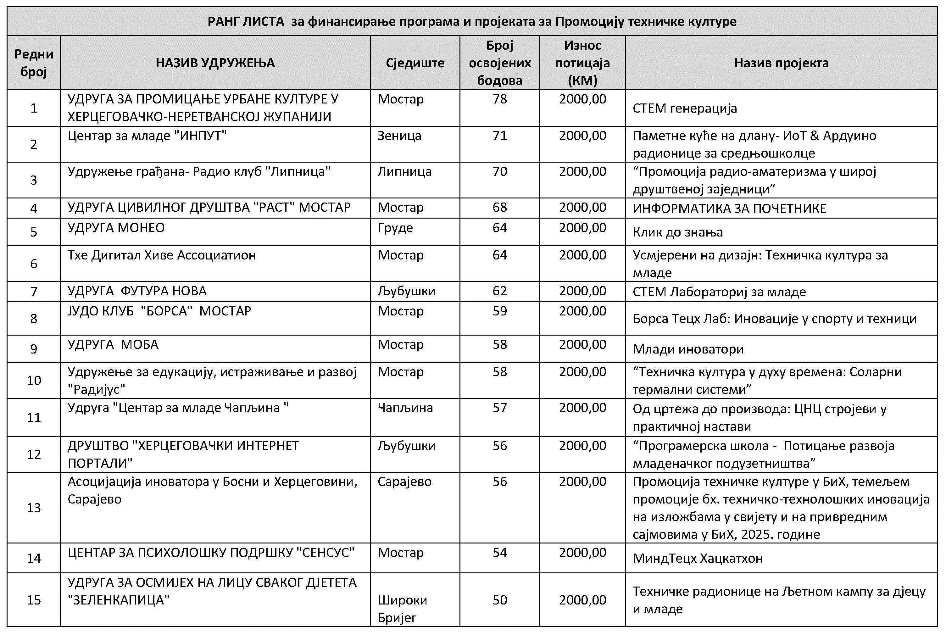 (1) Od dijela prihoda u iznosu od 463.626,98 KM uplaćenih u Budžet Federacije Bosne i Hercegovine u 2024. godini, ostvarenih po osnovu naknada za priređivanje igara na sreću, odobrava se iznos od 54.000,00 KM za finansiranje programa i projekata iz oblasti - Promocija tehničke kulture i Udruženja koja se bave inovacijama za nagradni fond za nagrađivanje inovatora za inovacije od međunarodnog značaja, na osnovu Liste korisnika sačinjene po okončanom javnom konkursu (Prilog - Lista korisnika).(2) Lista korisnika iz stava (1) ove tačke nalazi se u prilogu ove odluke i čini njen sastavni dio.