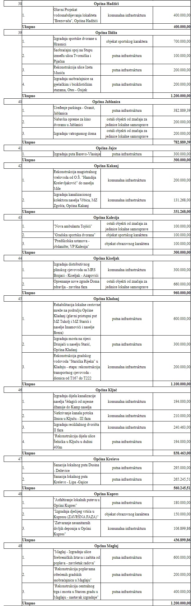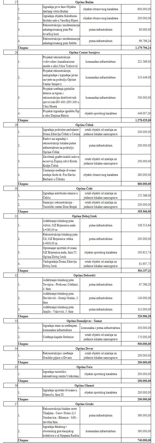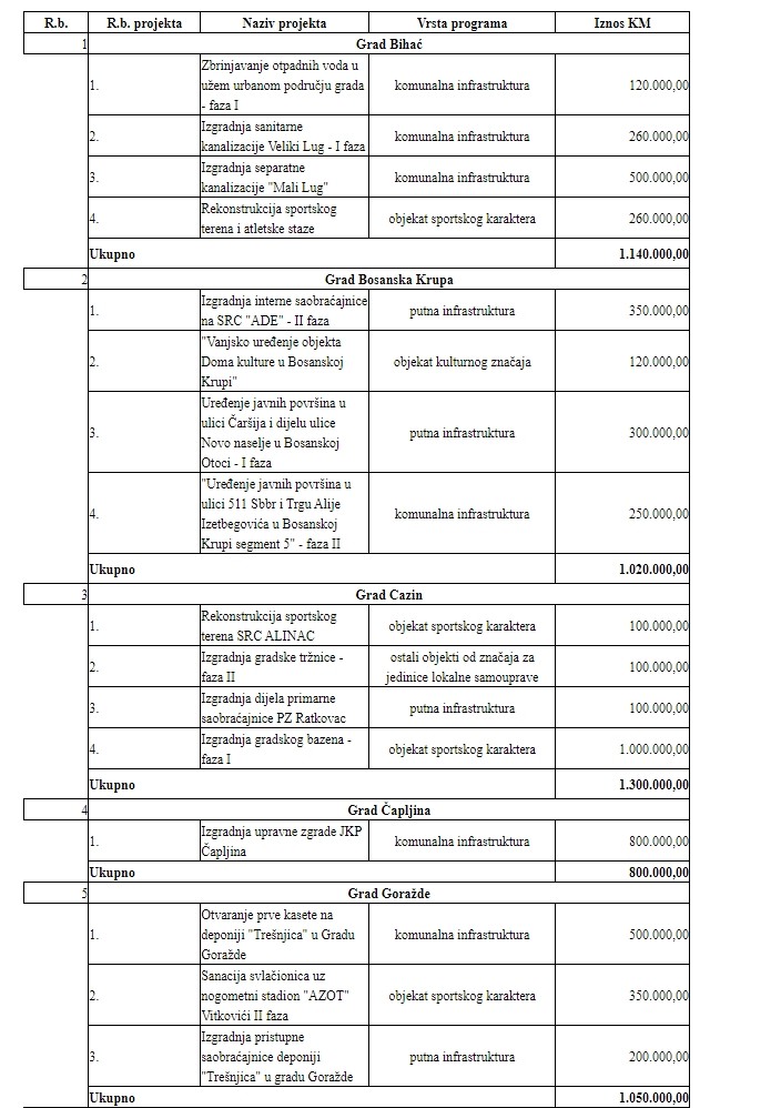 Na osnovu kriterija iz tačke IV., a u vezi tačke V. Odluke, a na prijedlog Komisije za dodjelu sredstava općinama i gradovima iz Budžeta Federacije Bosne i Hercegovine, utvrđuje se raspodjela sredstava u iznosu od 49.995.471,18 KM na općine i gradove s pojedinačnim i konačnim iznosima kako je prikazano u tabelarnom pregledu: