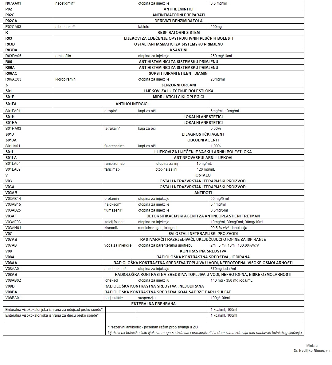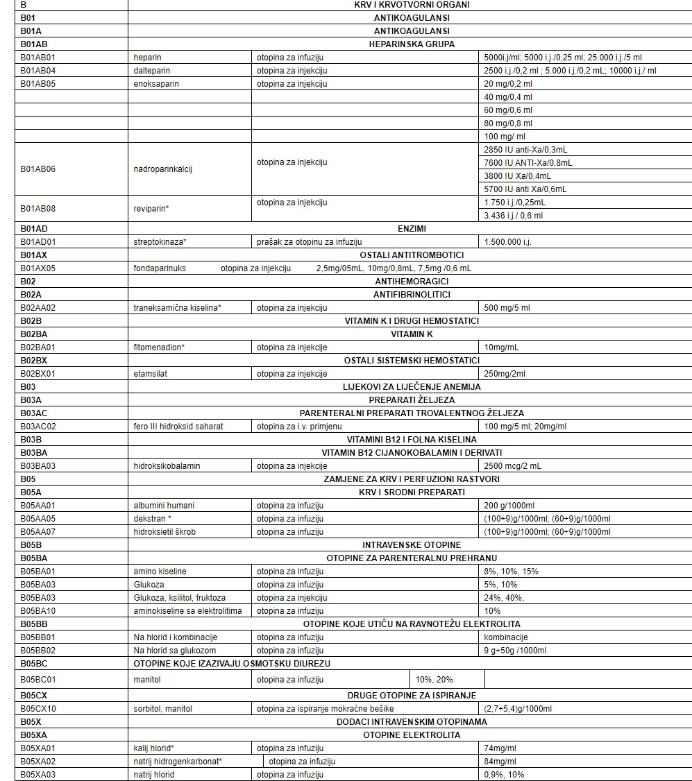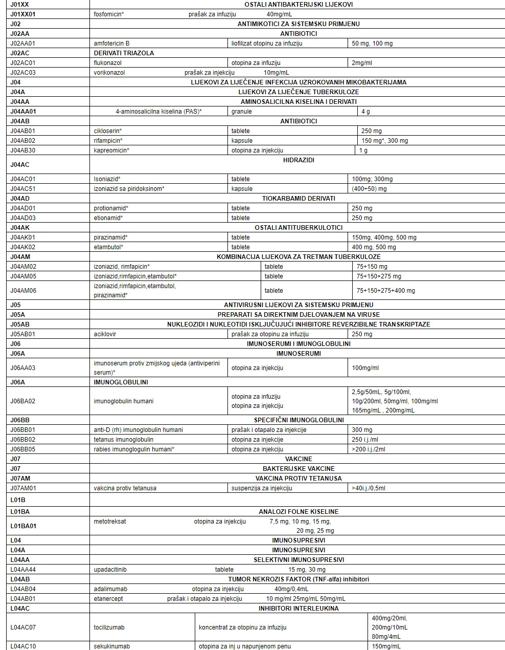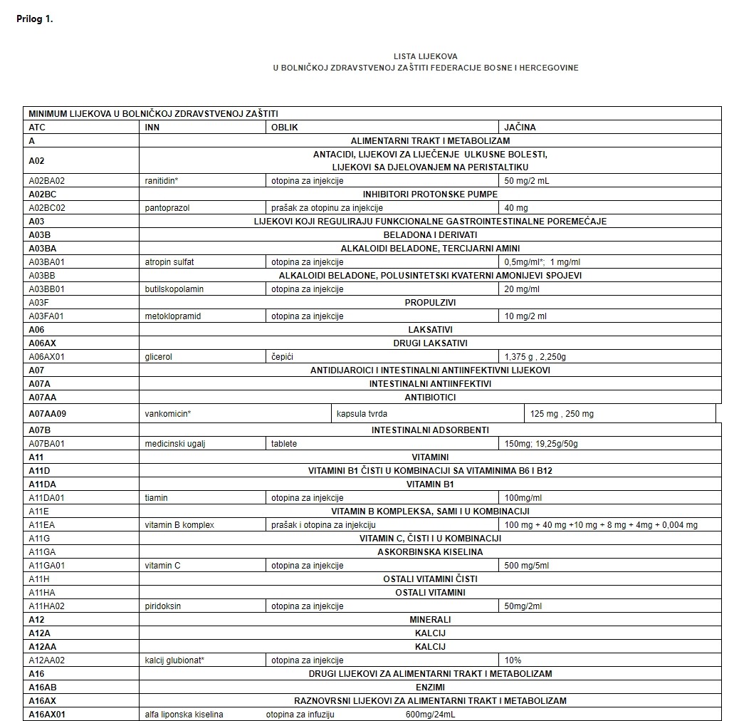 O LISTI LIJEKOVA U BOLNIČKOJ ZDRAVSTVENOJ ZAŠTITI FEDERACIJE BOSNE I HERCEGOVINE