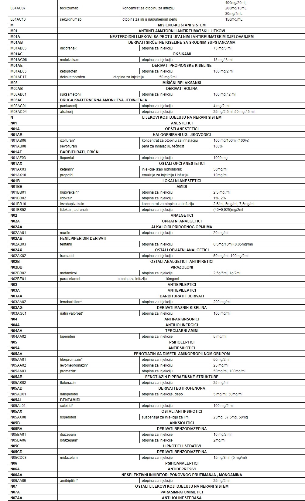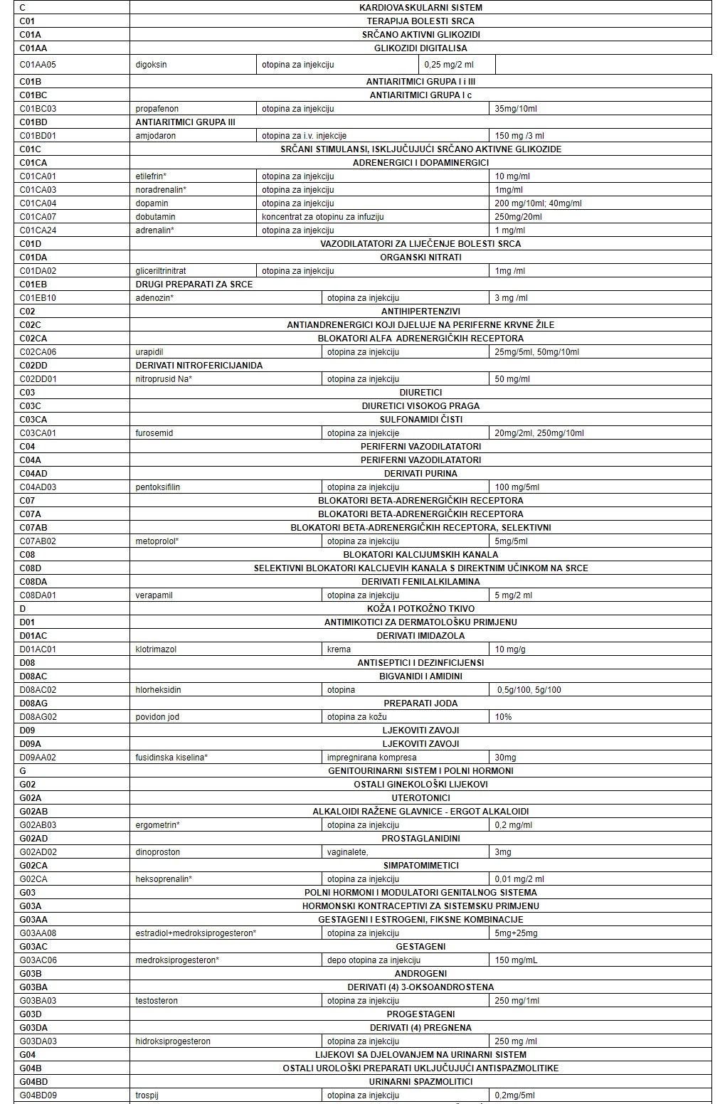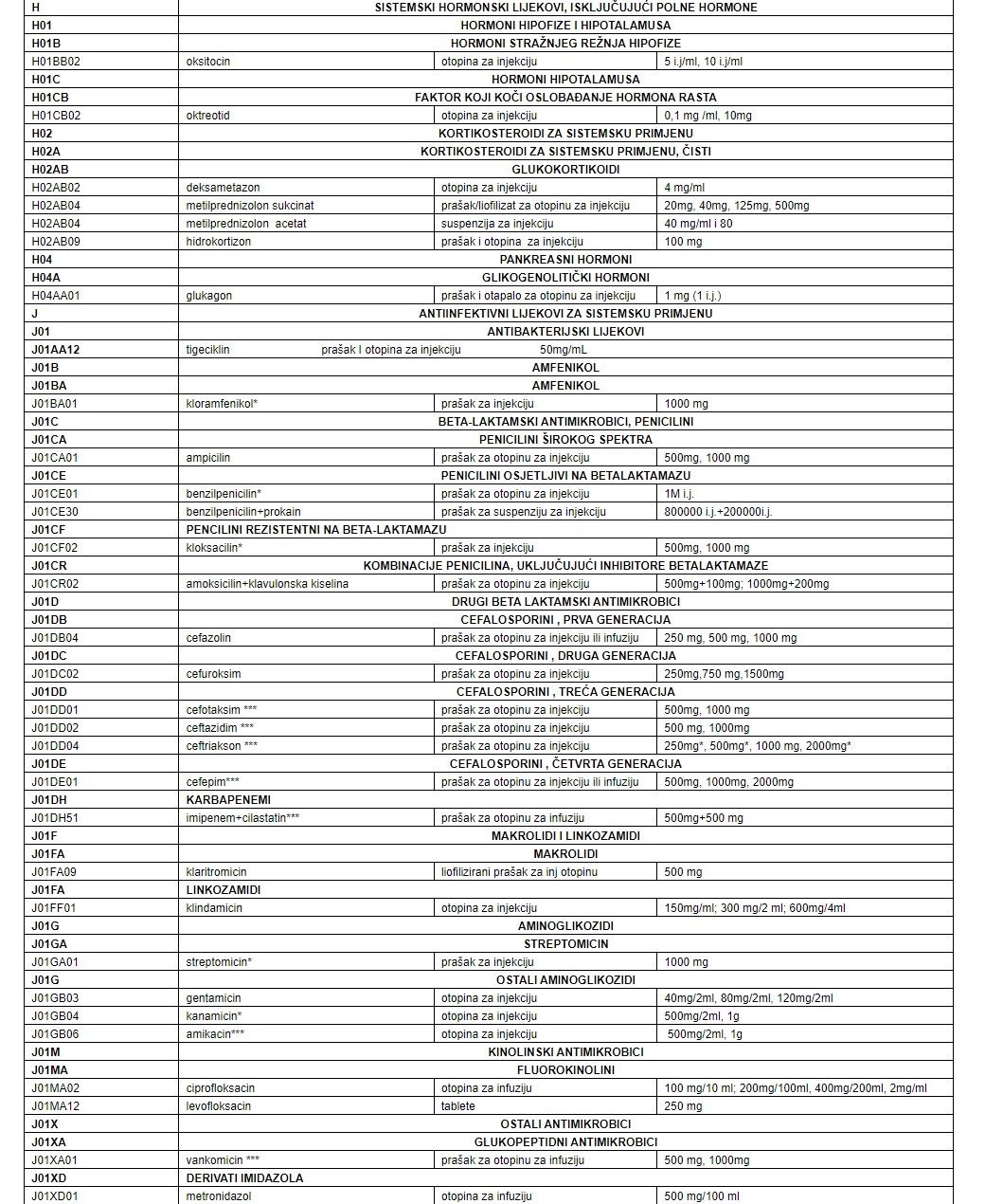 (1) Obavezni podaci o lijekovima u Federalnoj bolničkoj listi lijekova, saglasno članu 15. Pravilnika, su sljedeći:- šifra lijeka na osnovu anatomsko-terapijsko-kemijske klasifikacije lijekova - ATC,- internacionalno nezaštićeno ime lijeka - INN,- farmaceutski oblik lijeka,- jačina lijeka,- originalno pakiranje lijeka,- medicinske indikacije.(2) Ukoliko se na Federalnu bolničku listu lijekova uvrštava generički naziv lijeka čiji zaštićeni naziv nije registriran u Bosni i Hercegovini (u daljem tekstu: BiH), a u smislu člana 12. Pravilnika, navedeni generički naziv lijeka označava se zvjezdicom u gornjem desnom kutu pokraj naziva lijeka (XXXX*).
