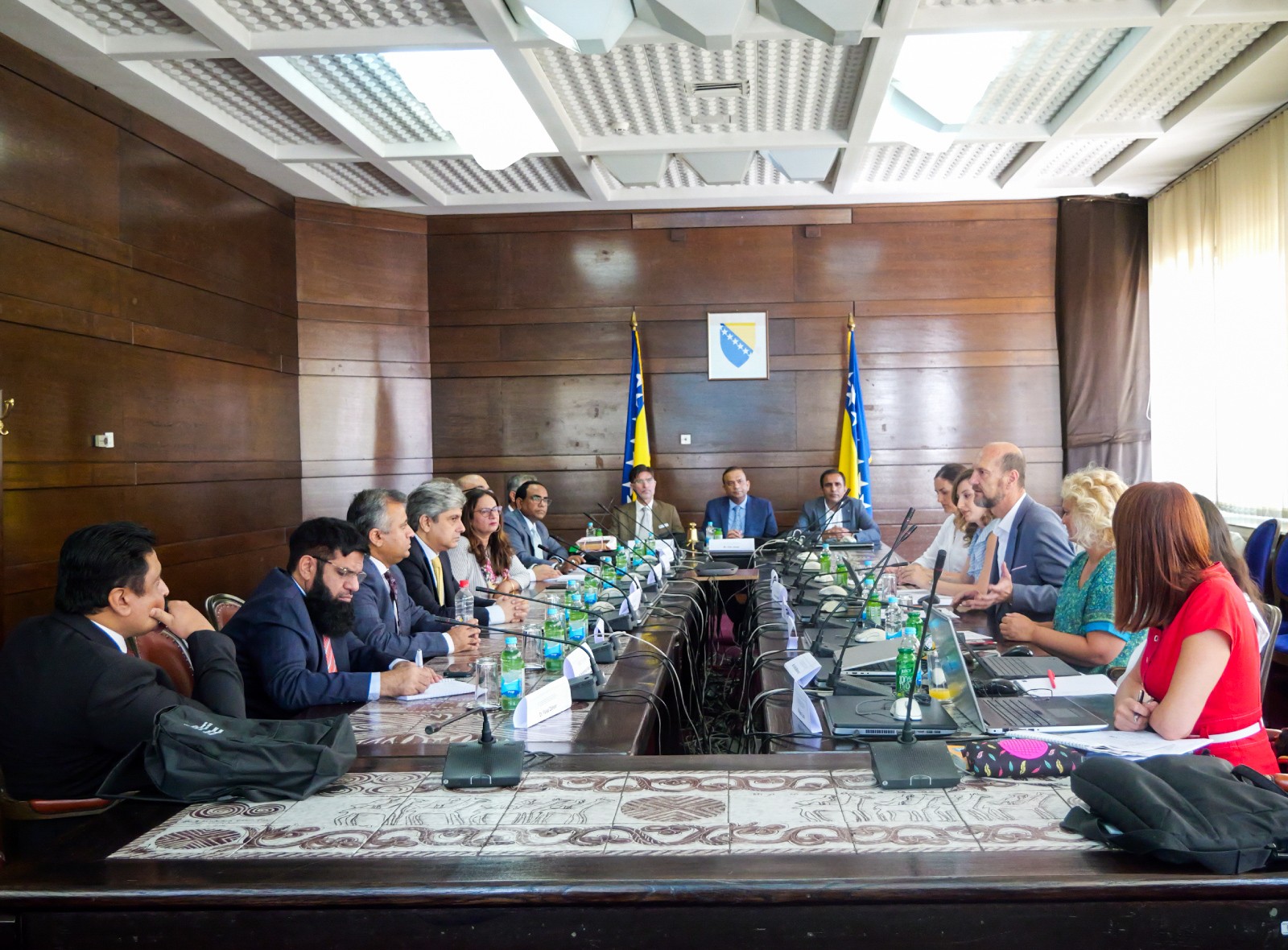 Direktor Begić je, uz dobrodošlicu gostima, podsjetio na Memorandum o razumijevanju o naučnoj i tehnološkoj saradnji koji je potpisan između Ministarstva civilnih poslova BiH i Ministarstva nauke i tehnologije Islamske Republike Pakistan iz 2020. godine, a u sklopu čije realizacije je i današnji susret.