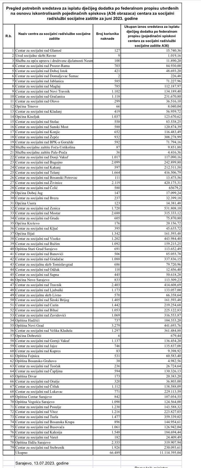 - U mjesecu junu za isplate dječijih dodataka po osnovu dostavljenih zahtjeva iz općina i centara za socijalni rad s područja cijele Federacije BiH, Ministarstvo je izdvojilo ukupno 11.114.395 KM – kazao je federalni ministar rada i socijalne politike Adnan Delić.