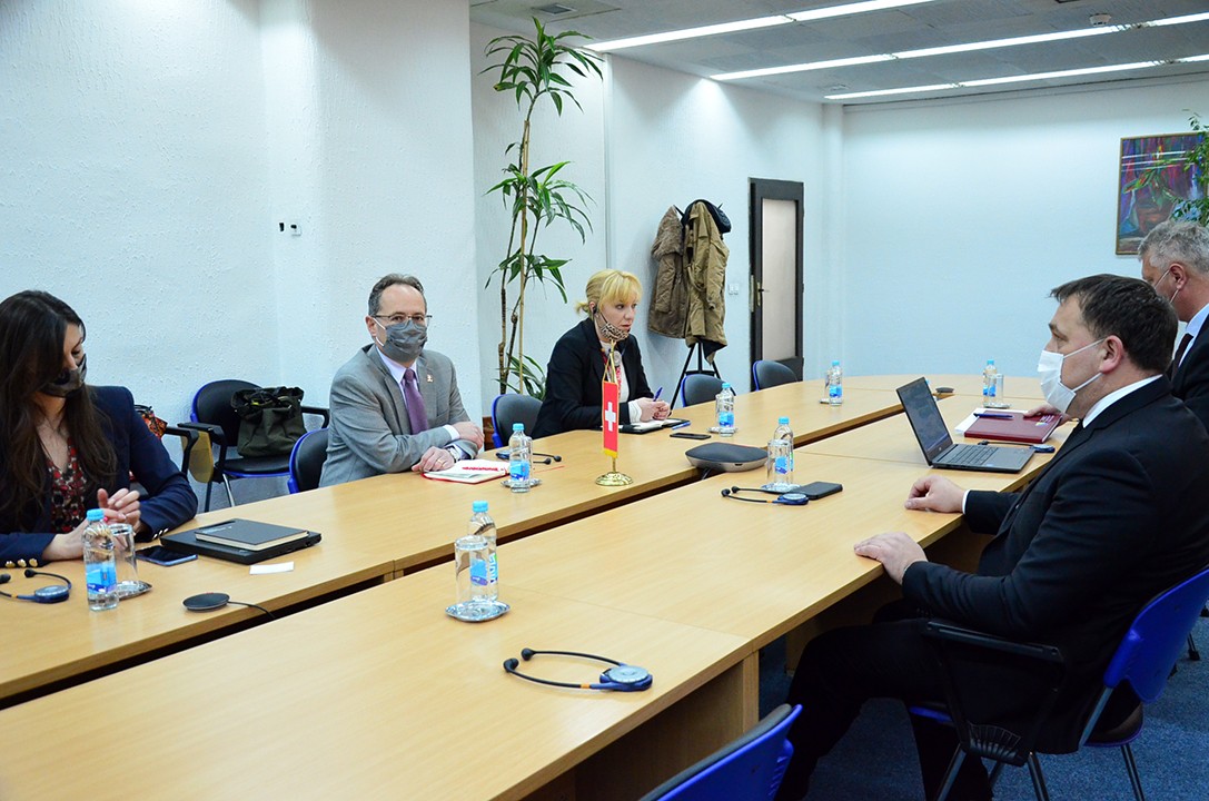 Federalni ministar poljoprivrede, vodoprivrede i šumarstva Šemsudin Dedić održao je danas, u sjedištu Vlade Federacije BiH u Sarajevu, sastanak sa ambasadorom Švicarske Konfederacije u BiH Danielom Hunnom.
