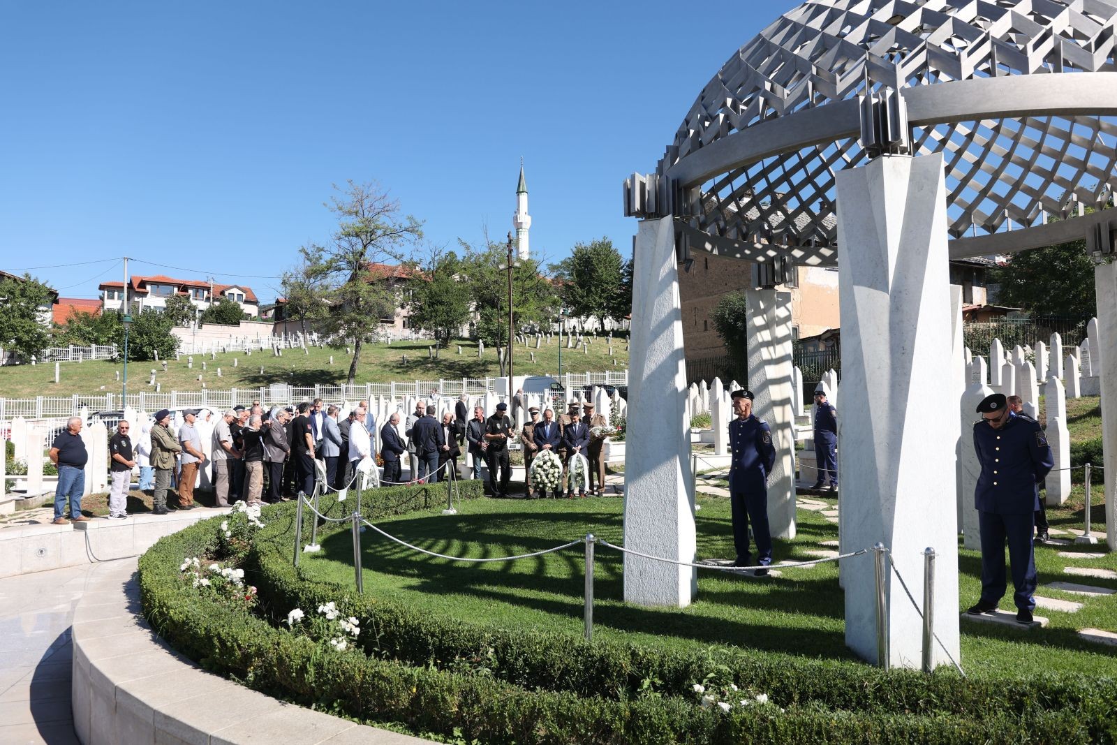 Polaganjem cvijeća i odavanjem počasti poginulim borcima, šehidima i civilnim žrtvama rata, predstavnici svih nivoa vlasti u BiH, te boračkih udruženja godišnjicu su obilježili u Sarajevu, na Šehidskom spomen mezarju Kovači, Vječnoj vatri, Spomeniku ubijenoj djeci opkoljenog Sarajeva, haremu Alipašine džamije, grobljima Lav, Sveti Marko, Sveti Josip i Stadion, te Aleji veterani - Gradskom groblju Vlakovo, prenijela je Fena.