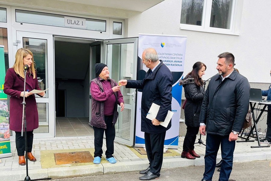 Federalni ministar raseljenih osoba i izbjeglica Edin Ramić, načelnik općine Tešanj Suad Huskić i predstavnici Ministarstva za ljudska prava i izbjeglice BiH, danas su u Tešnju uručili ključeve korisinicima 21 stana u novoizgrađenom stambenom objektu po sistemu neprofitnog socijalnog stanovanja.