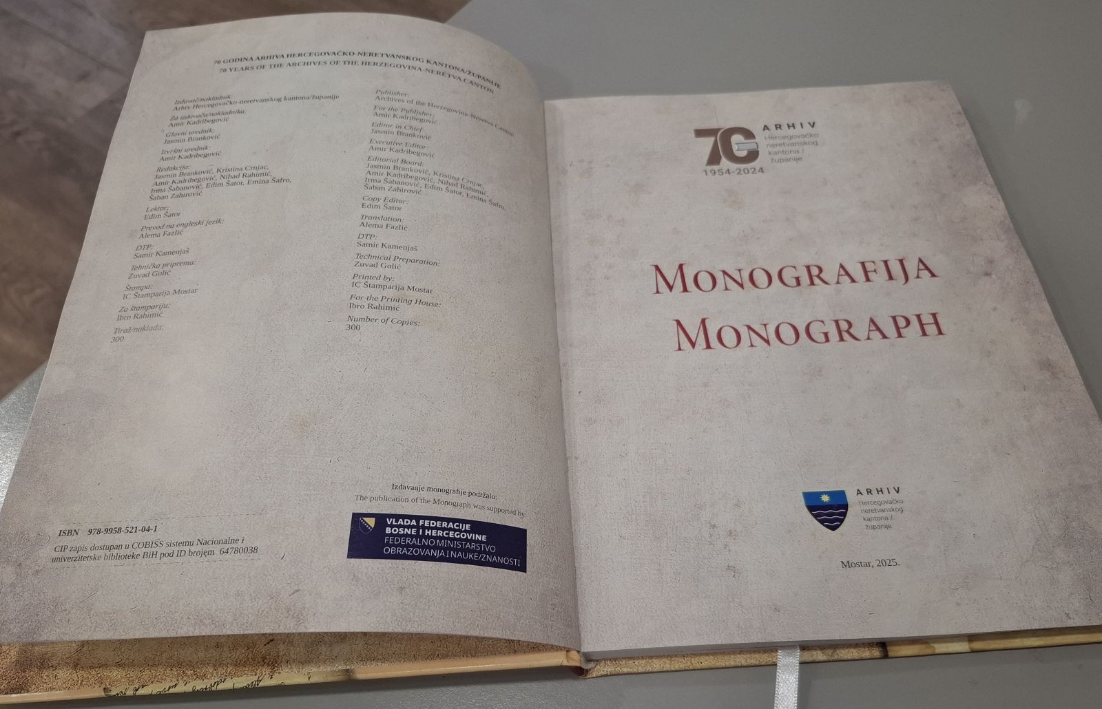 U okviru programa održana je i promocija Monografije “Arhiv Hercegovačko-neretvanskog kantona 1954 - 2024”, čije je izdavanje podržalo Federalno ministarstvo obrazovanja i nauke/znanosti.
