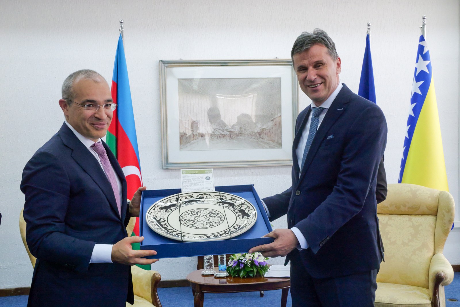 Azerbejdžanski ministar predvodio je delegaciju svoje  države na sastanku o unapređenju ekonomske saradnje i mogućnostima investicija s posebnim osvrtom na oblasti komunikacija, industrije i energetike na području Federacije BiH. Iskazan je interes za investicije u cestogradnju, obnovljive izvore energije, snabdijevanje plinom, farmaceutsku industriju, kao i za saradnju u drugim sektorima industrije.
