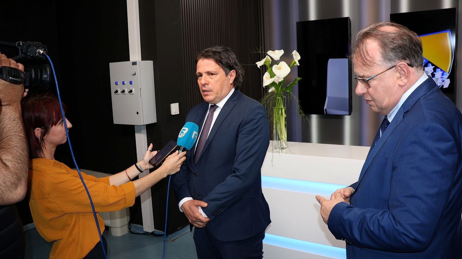 Federalnog premijera i ministre dočekali su generalni direktor RTV FBiH Bakir Hadžiomerović, urednik Informativnog programa FTV-a Mirza Huskić, te izvršni direktor Sektora za programe RTV FBiH Ivan Pavković i član UO RTV FBiH Zoran Krešić.