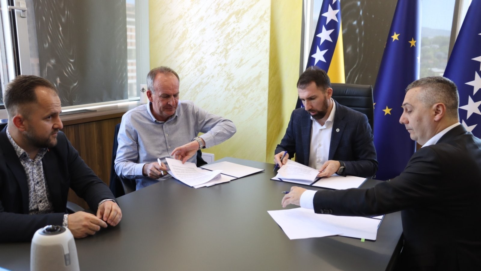 Federalni ministar rada i socijalne politike Adnan Delić, federalni ministar raseljenih osoba i izbjeglica Nerin Dizdar i direktor Humanitarne organizacije Međunarodni forum solidarnosti EMMAUS Hamzalija Okanović potpisali su danas Memorandum o razumijevanju i saradnji na realizaciji projekta izgradnje novih smještajnih objekata Prihvatnog centra „Duje“.