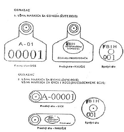 x 12 mm sa tekstom: "FBIH VETERINARSKA INSPEKCIJA" te oznaka proizvodjaca.