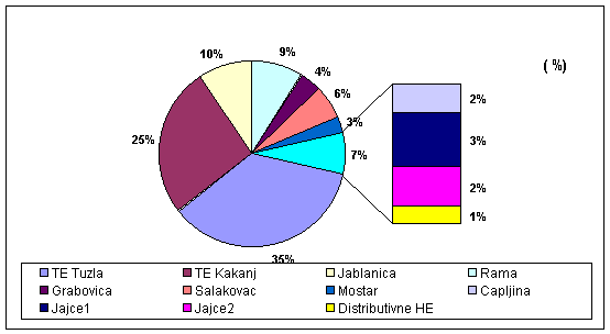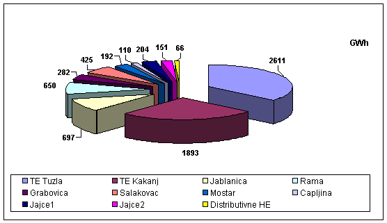 proizvodnje električne energije u Federaciji BiH za 2002.g. - po